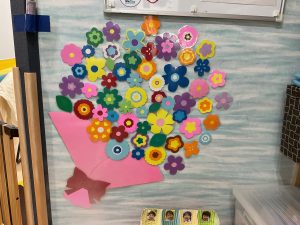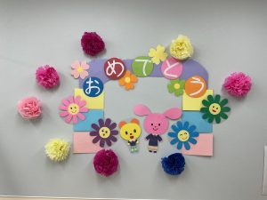 園では壁面が卒園おめでとう、進級おめでとうに変わりました🩷
